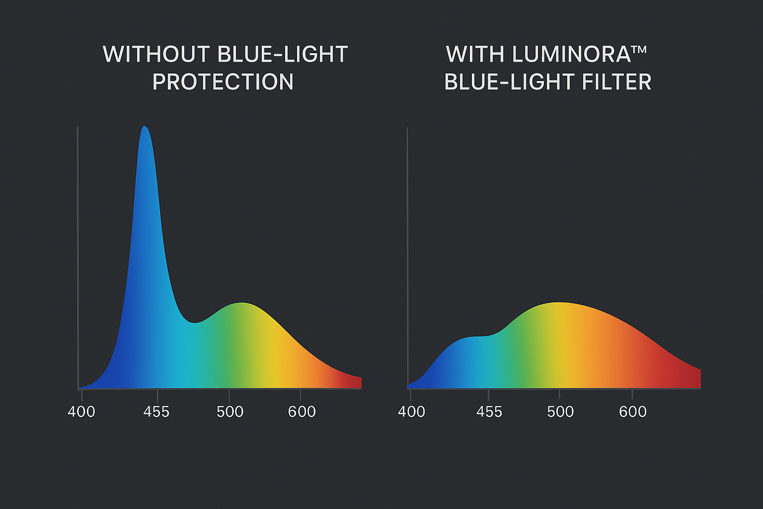 Luminora Red Lenses filter the harsh 400–520 nm range to help you: